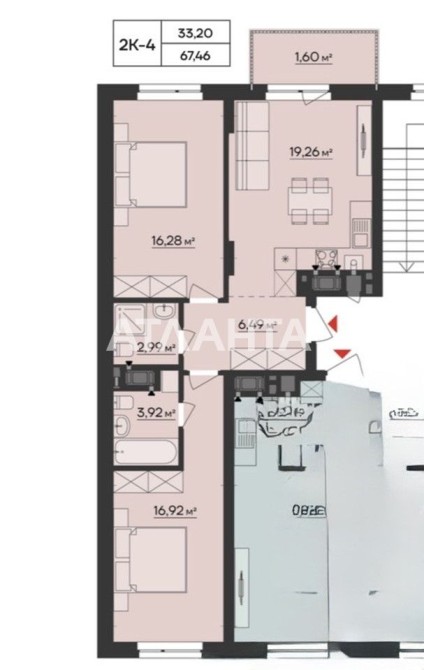 • Общая площадь 66 м2