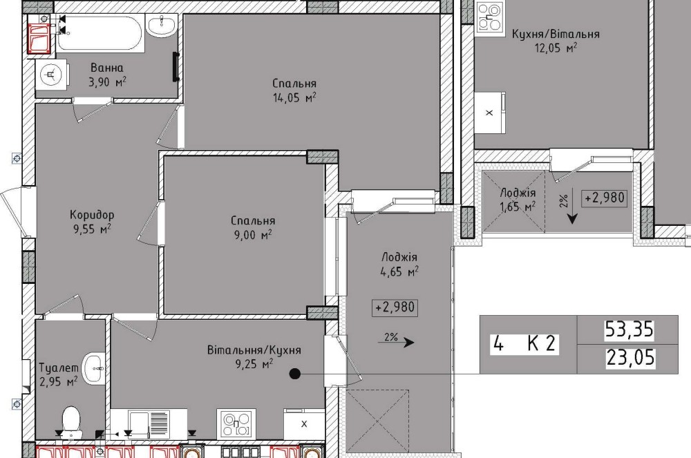 • Общая площадь 53.35 м2