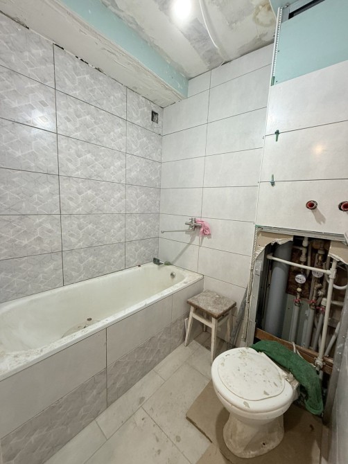 В квартирі уже зроблена найдорожча частина ремонту: поміняна сантехніка, частково заведена нова електрика, покладена плитка на полу та робоча поверхня в кухні, нові вхідні двері. Також залишаються сипучі будматеріали, гіпсокартон.