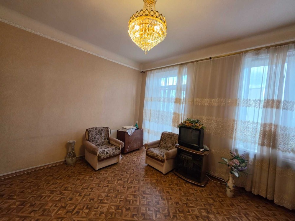 Пропонуємо до продажу великогабаритну 2-кімнатну квартиру-«сталінку» загальною площею 57 кв. м, розташовану на 3-му поверсі 4-поверхового будинку на проспекті Тараса Шевченка (орієнтир – ЦУМ). Квартира в хорошому житловому стані. Є 2 балкони. Встановлено м/п вікна, металеві вхідні двері, лічильники на газ та воду. Газове автономне опалення. С/в роздільний, у кахлі. Покриття на підлозі – лінолеум, на стінах – шпалери.