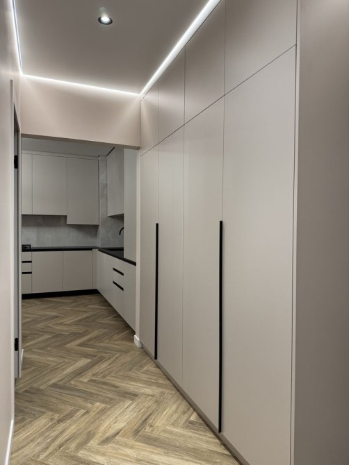 У коридорі вмонтована шафа та підвісна тумбочка з дзеркалом