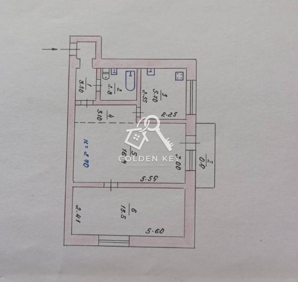 - Загальна площа: 46 м²