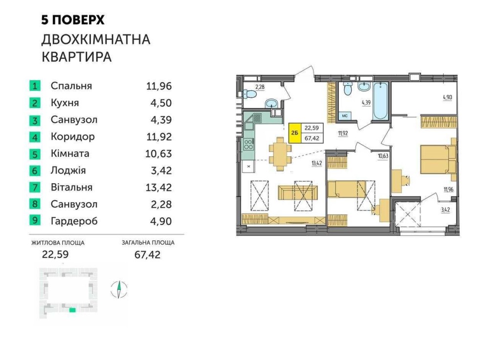 Площа: 67,42 м²