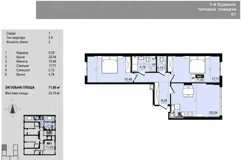 Загальна — 71 м²
