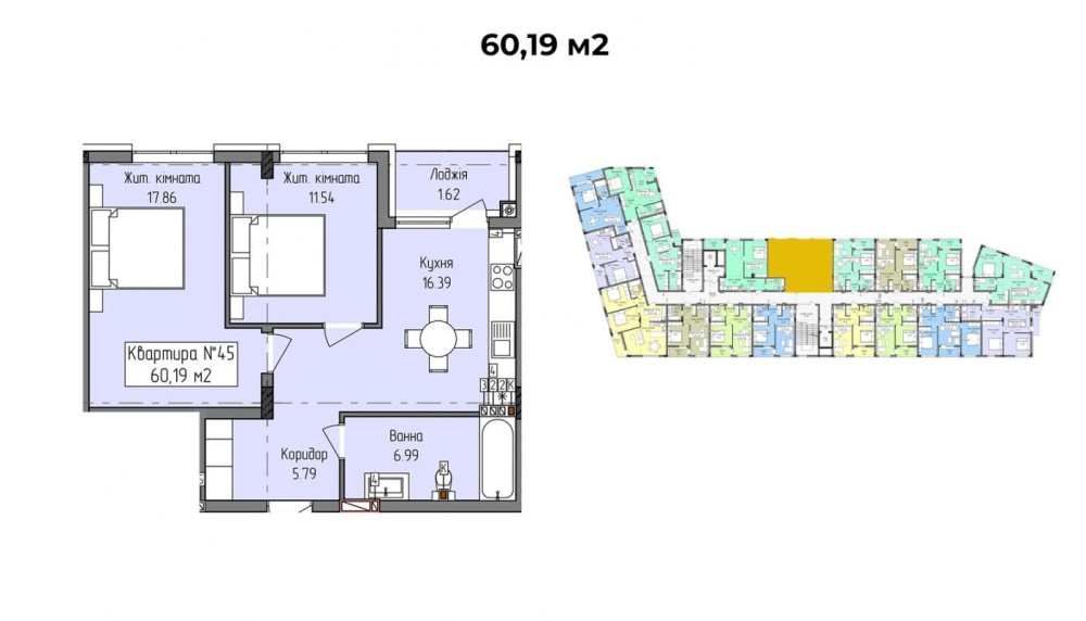 • Общая площадь 60.19 м2
