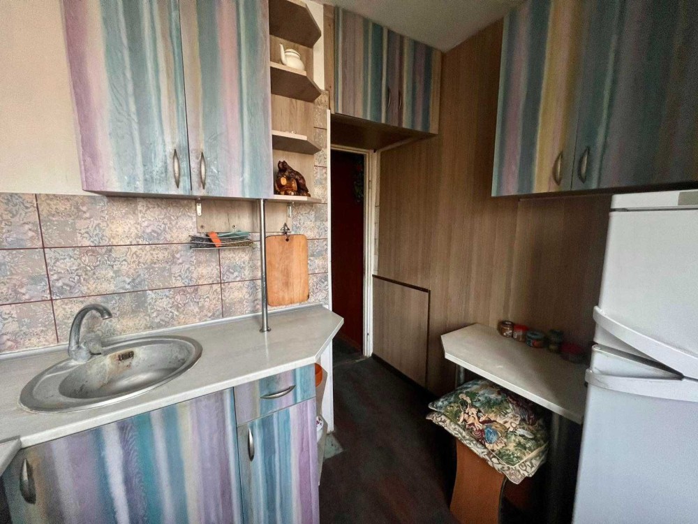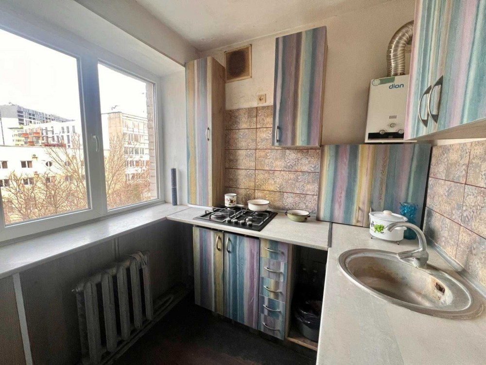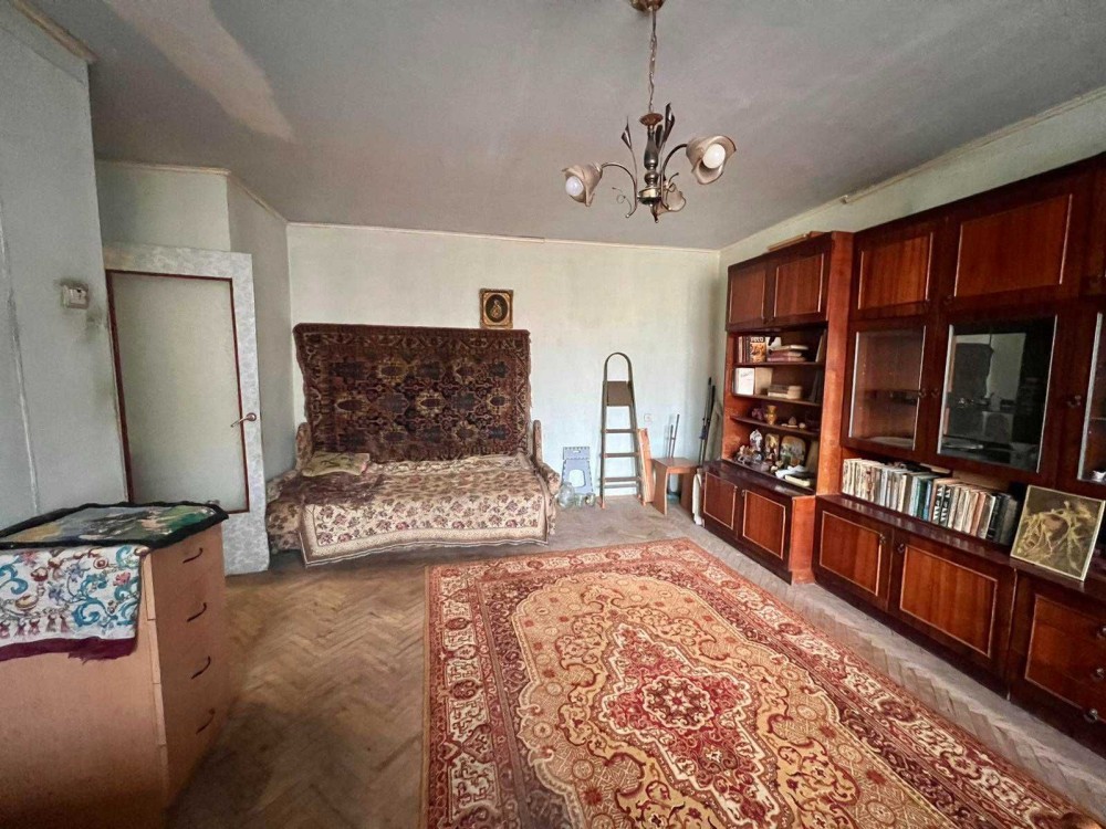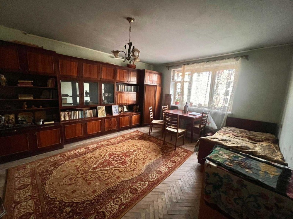 Квартира складається з 2 ізольованих кімнат, просторого балкону, кухні, роздільного санвузла та коридору. Висота стелі-2,65м. Квартира не кутова. Опалення- центральне. Стан-частковий ремонт в кухні та в коридорі, кімнати та санвузол потребують ремонту.
