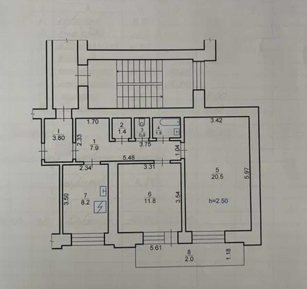 Розташована на 8 поверсі із 8 поверхів цегляного будинку.