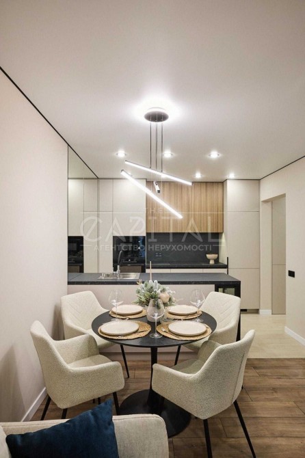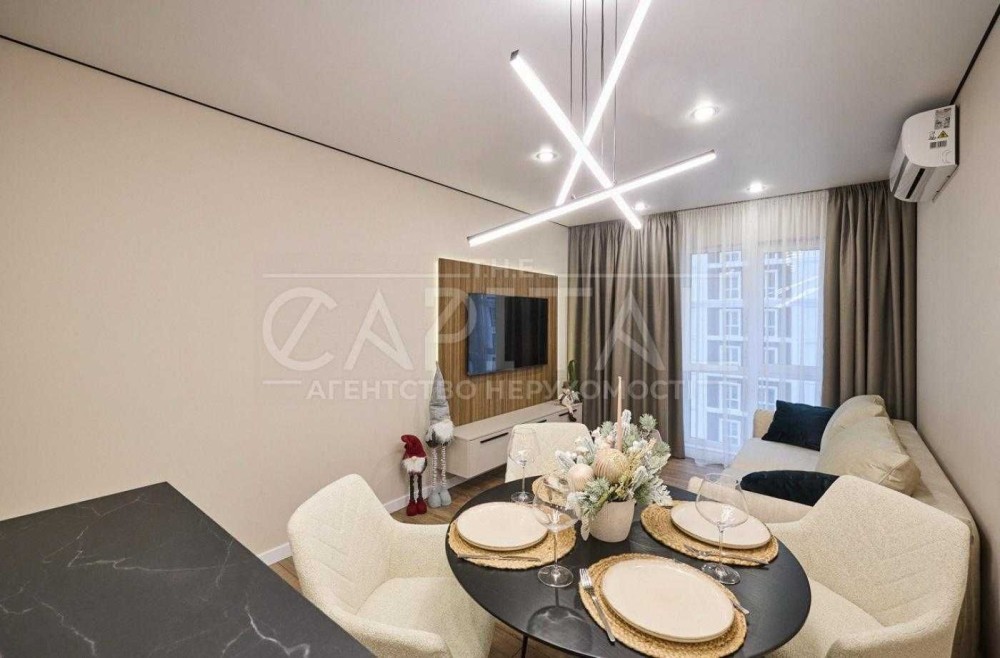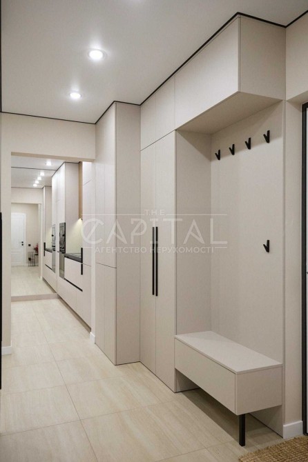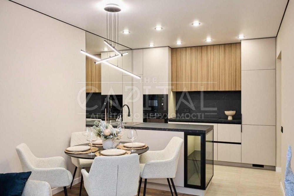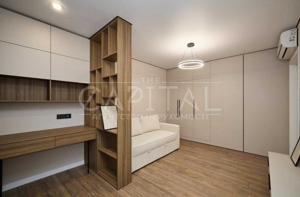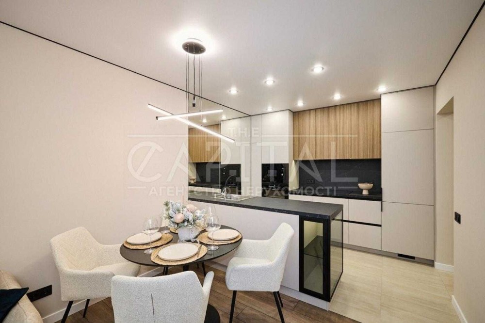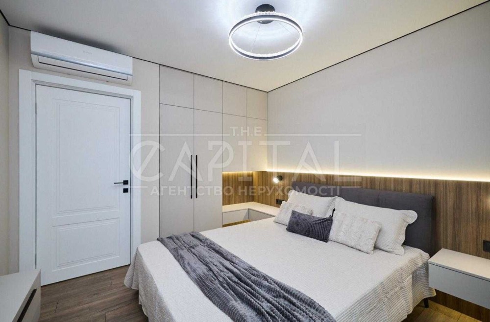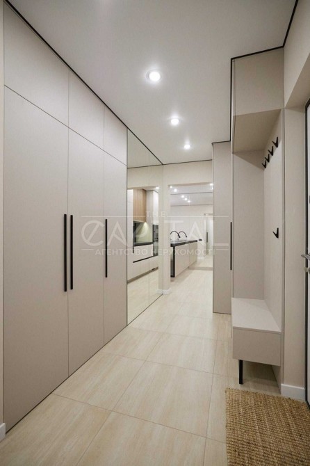 В квартирі виконано якісний сучасний ремонт преміум-рівня з використанням італійських матеріалів. Продумано велику кількість місць для зберігання: кухня до стелі, вбудовані шафи, вітрина, ліжко та диван з нішами.