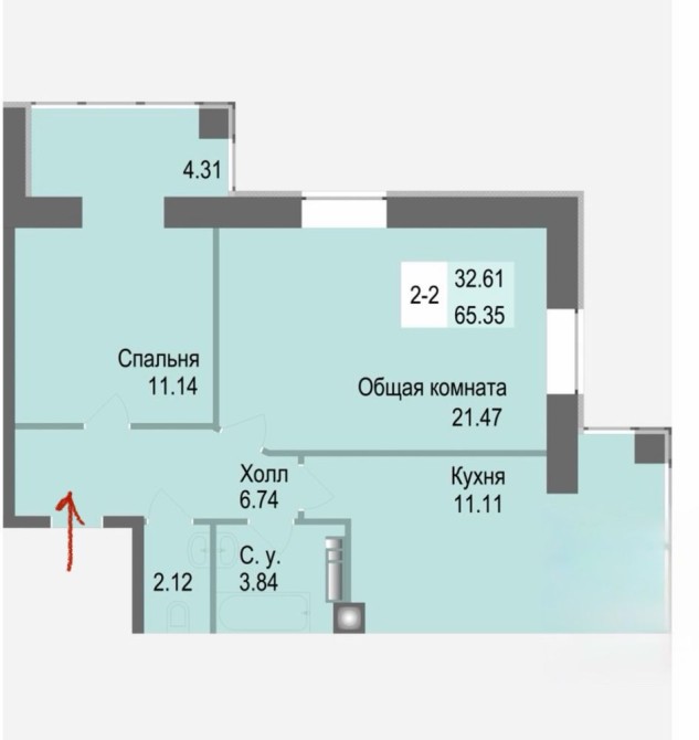 • Общая площадь 65 м2