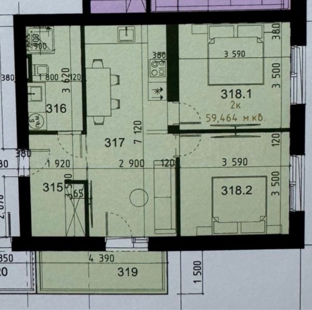• Общая площадь 59.64 м2