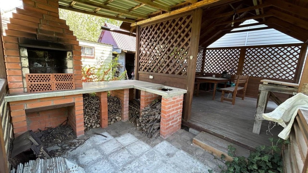 На подвірї розміщені: технічна будівля з погрібом, господарська споруда для зберігання садового інвентарю (4×6 м), простора бесідка з зоною барбекю. Є полікарбонатна теплиця (3×6 м).