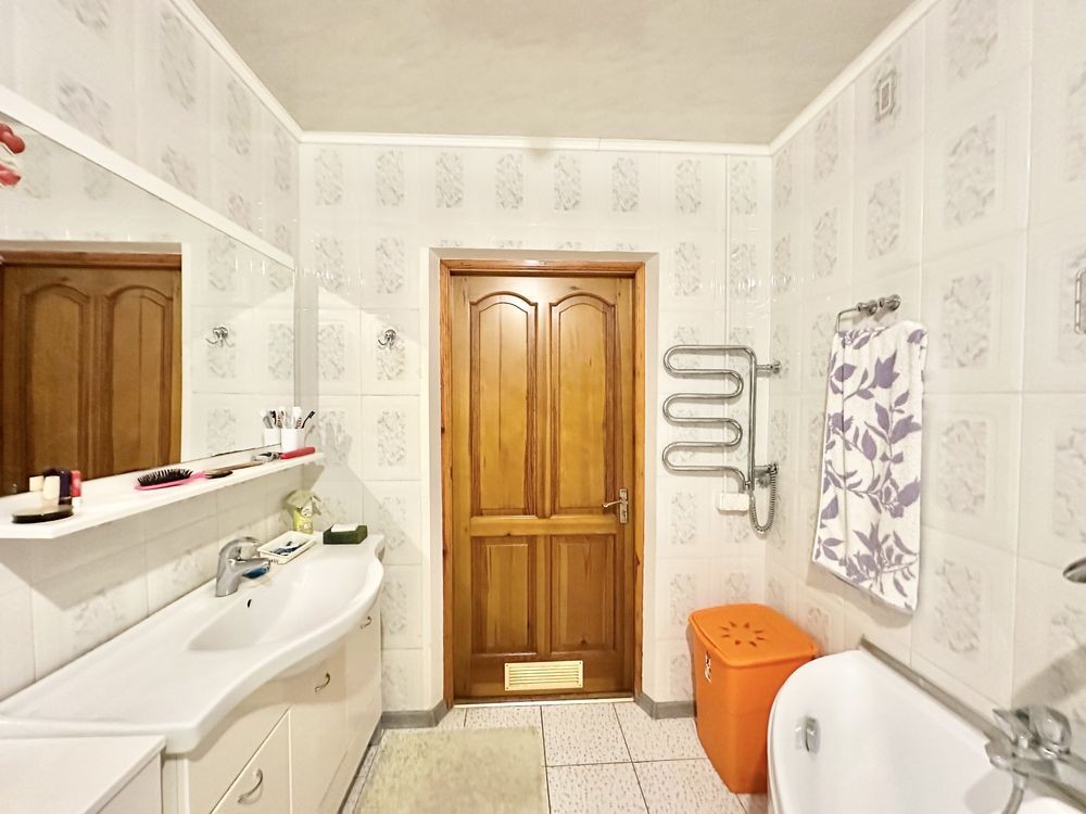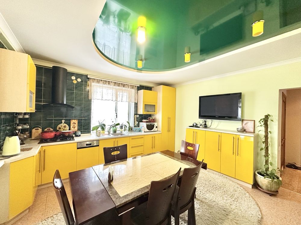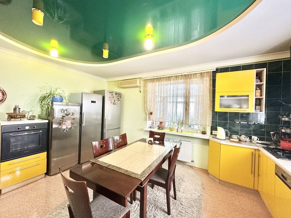 Загальна площа будинку 170 кв.м, велика кухня, 3 спальні, гостинна, два санвузли, камін на дровах. Кожна кімната мебльована. Ремонт у класичному стилі. Земельна ділянка 16 соток, приватизована. 2 гаража, зона барбекю, сарай, огороджена високим парканом, тротуарна плитка, із зеленими багаторічними насадженнями: хвойні та плодові дерева. Ландшафт.