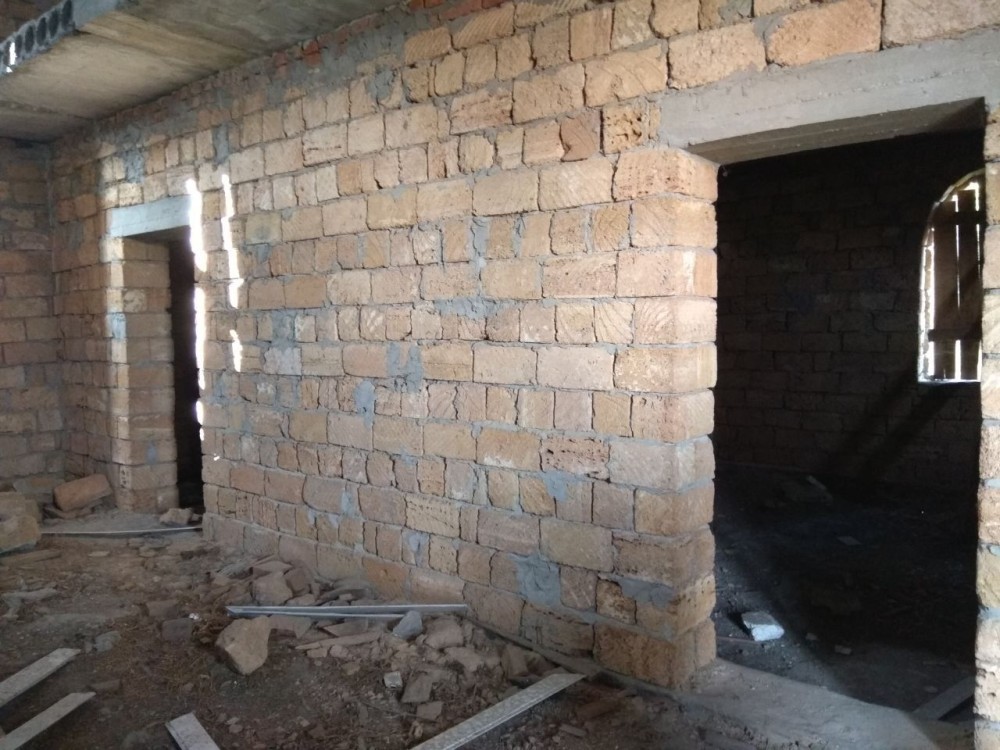 Будівля з блоку черепашнику, фундамент з фундаментних блоків, робилось все на совість для себе, між поверхами плити перекриття, крівля дерев'яна зверху металочерепиця .