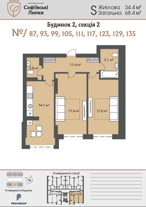 Продаж 2к 69м2 Комфорт ЖК Софіївські Липки від забудовнника!Держ програми Так