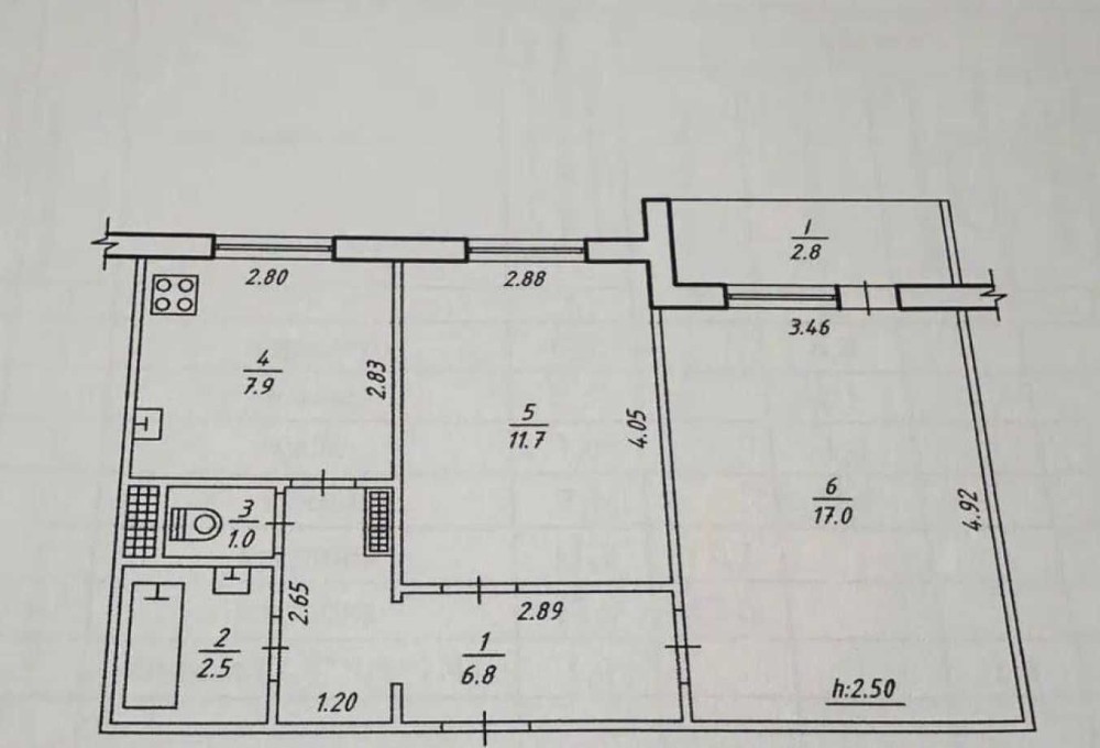 Площа: 49.7 м²/28.7 м²/7.9 м²