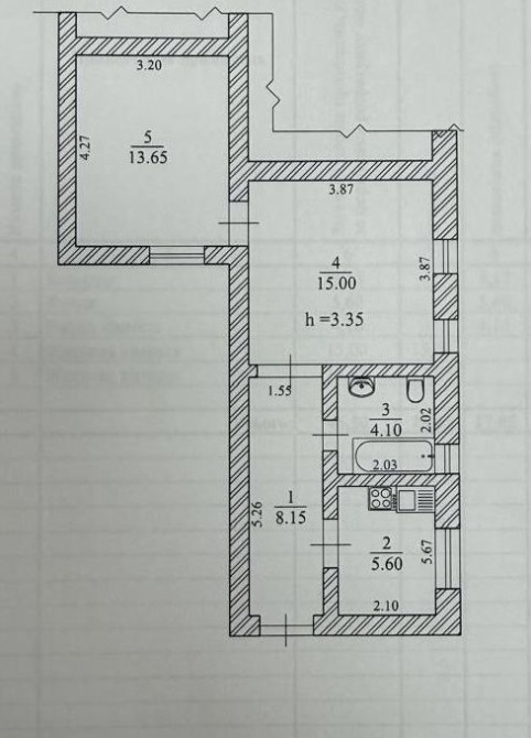 • Висота стель — 3,3 м