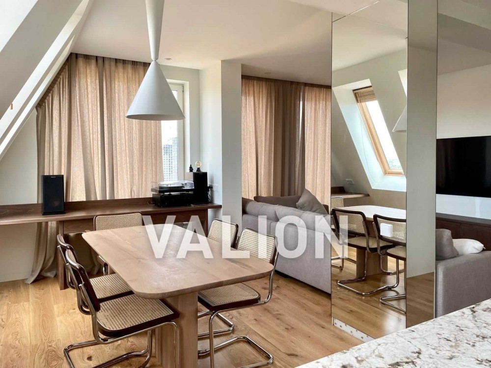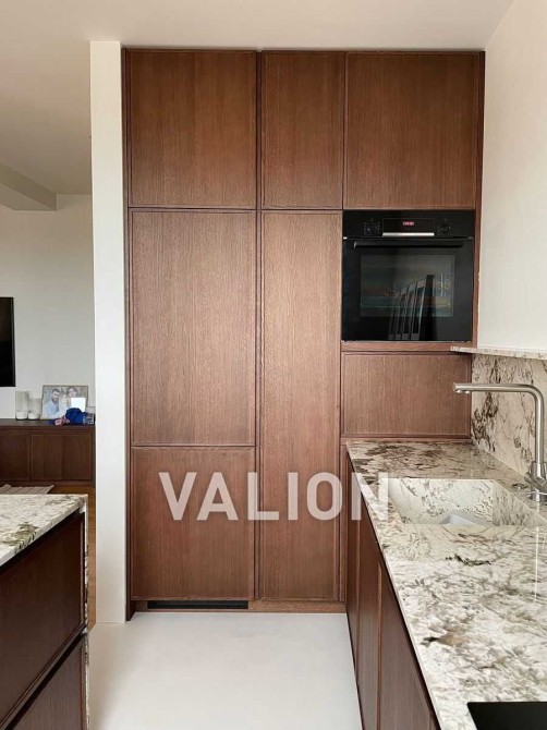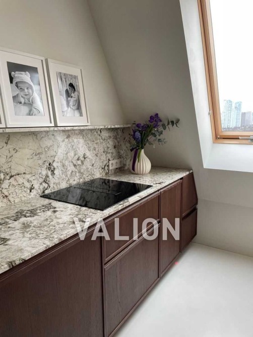 Висока якість прикраси: італійська плитка ручної роботи, кварцит, дубова дошка інженерна. Встановлено преміальну техніку Bosch, Samsung, Elica витяжка. Тепла підлога, дизайнерське освітлення Flos та Vibia створюють незвичайну атмосферу.