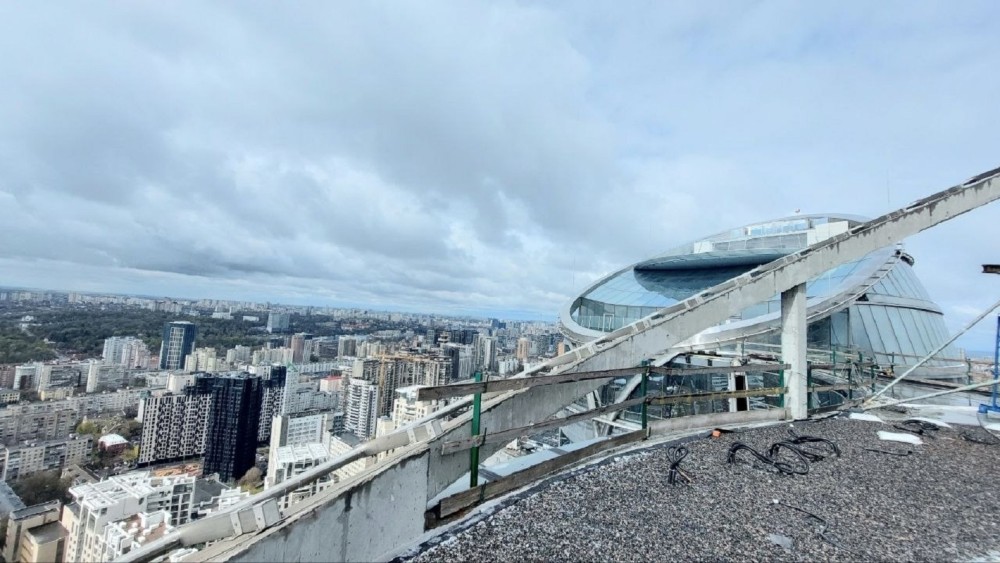у нижній частині буде торговий центр із магазинами, супермаркетом, сервісами, бутіками, ресторанами та кафе.