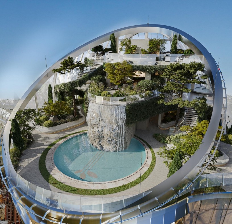 Вежі об’єднано скляними мостами, для прогулянок на висоті пташиного польоту.
