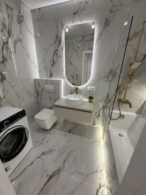 — стильний санвузол із золотою сантехнікою та ванною