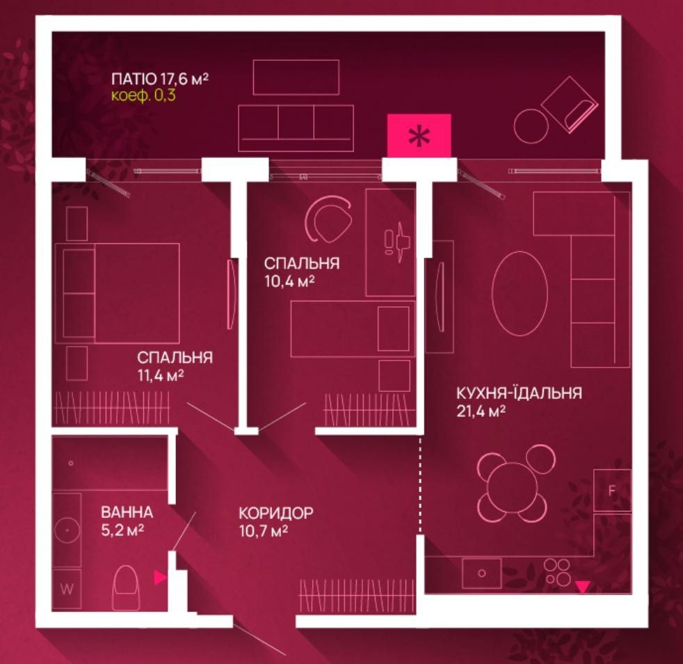 Продаж 2х кімнатної квартири з патіо в новобудові в центрі міста