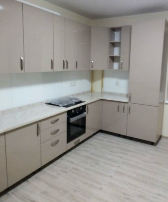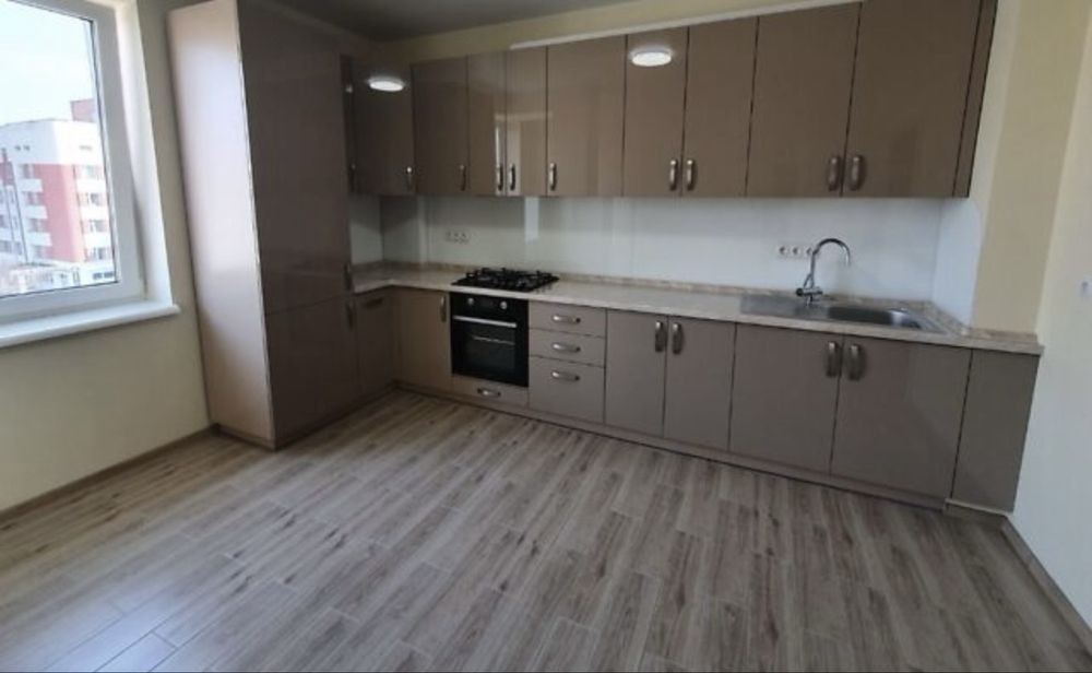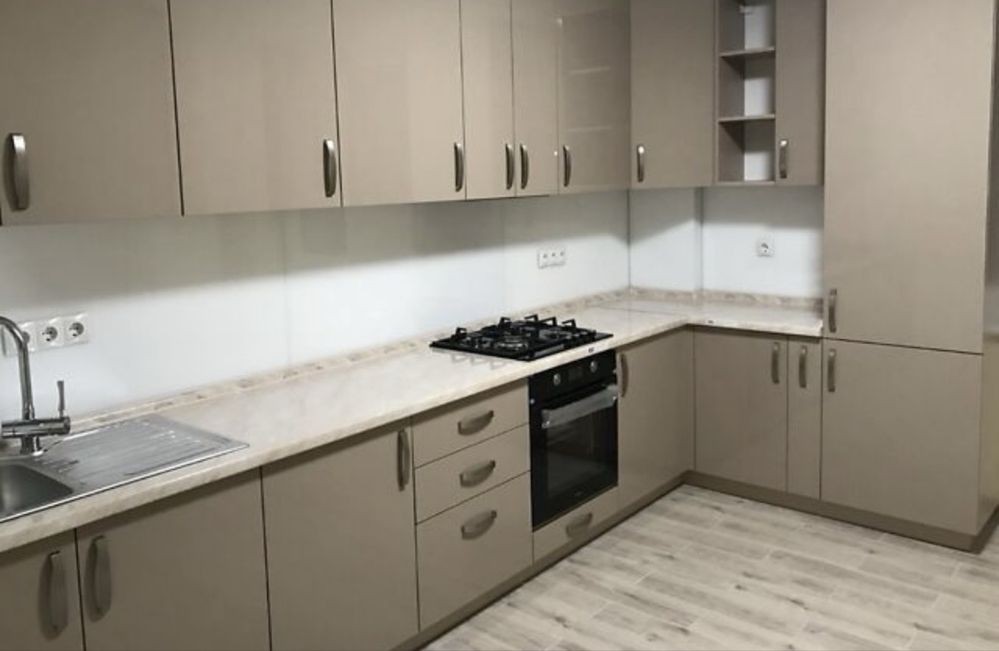 Кухня — сучасна та функціональна, повністю укомплектована необхідною технікою: вбудована варильна поверхня, духова шафа та витяжка.