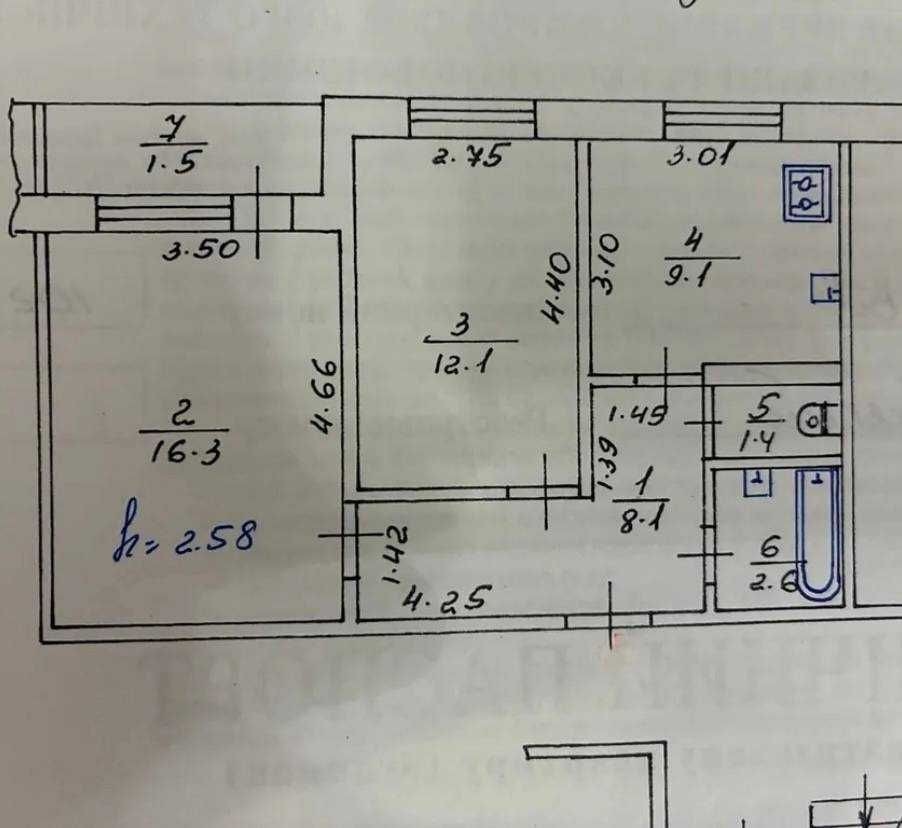 Продається 2-кімнатна квартира загальною площею 51.1 м² по вул. Б.Хмельницького 243.