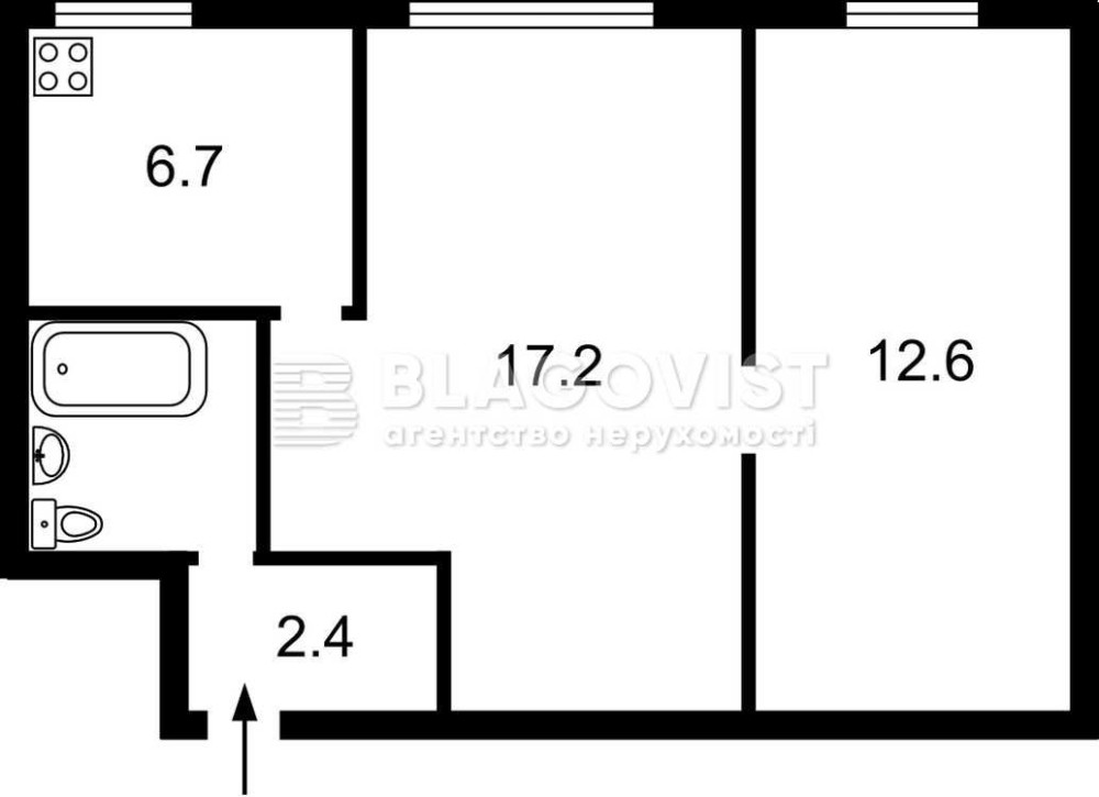 • Площадь кухни 6.7 м2