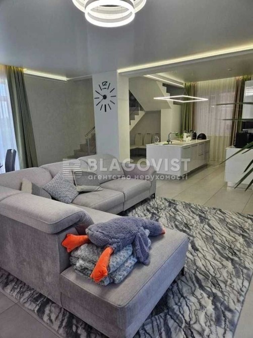 Продається капітальний житловий будинок в охайному, доглянутому стані: заходь - живи. Рік побудови - 2014. Розташування: Київська область, Бориспільський район, село Дударків (район зрубів). Відстань від воріт до ст. метро "Бориспільська" - 22 км, до ст. метро "Лісова" - 26 км. Під'їзд асфальтований. Загальна площа 216,8 кв.м., житлова - 111,6 кв.м., кухня - 12,4 кв.м., відкрита тераса 22 кв.м. В будинку чотири житлові кімнати (спальні), вітальня, два с/вузли з душовими кабінами, котельна, пральна, підвал, гараж на два авто (автоматичні ворота), погріб. Трифазне електропостачання з окремими стабілізаторами (на кожну фазу). Встановлено бензиновий генератор потужністю 6,5 кВт з автоматичним вмиканням у разі зникнення напруги в мережі. Газовий (з джерелом безперебійного живлення) та електричний опалювальні котли, бойлер для підігріву води. Водопостачання - особиста свердловина глибиною 60 метрів з фільтраційною системою очищення води. Чотири накопичувальні ємності (септики): для фекальної води (з вентиляцією) та відведення дощової (талої) води. Відеонагляд, домофон, сигналізація, провідний Інтернет. Площа земельної ділянки 22 сотки. Цільове призначення: будівництво та обслуговування житлового будинку. На території: літня кухня з барбекю, господарче приміщення, погріб, теплиця з полікарбонату, літній душ з вбиральнею, вольєр площею 13 кв.м., садок, газон з автоматичним поливом, город площею 7 соток. У садку: яблуні літніх та осінніх сортів, сливи, персики, вишні, черешня, айва, груша, смородина, виноград. По периметру ділянки паркан з профільного листа (фасадна частина на фундаменті з каменю). Автоматичні розсувні ворота. Будинок не перепродавався. Первісний документ - Свідоцтво про право власності. Поштова адреса, реєстрація місця проживання. Продаж за ціною власника, без комісійних посереднику.