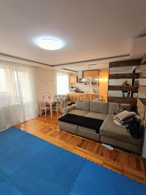 В квартирі виконано якісний ремонт, Меблі та техніка (BOSCH переважно) залишається, все як на фото. Планування: кухня , сан.вузел , велика вітальня, 2 окремі спальні ( одна с балконом , до іншої приєднали лоджію .
