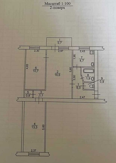 Поверх: 2й поверх 4-поверхового цегляного будинку.