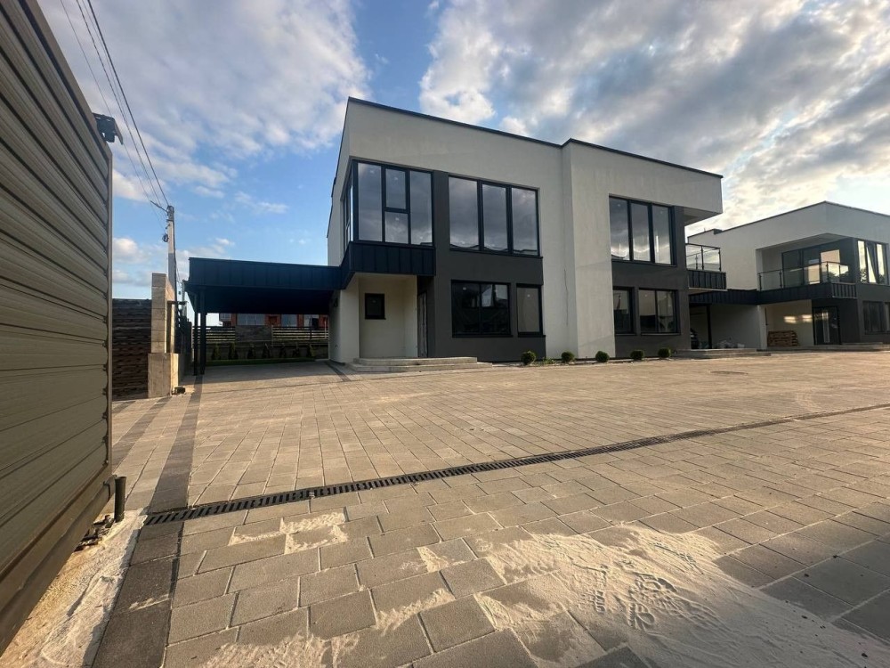 Територія котеджу облагороджена бруківкою, зеленою зоною, освітлення будинку, добрий доїзд.