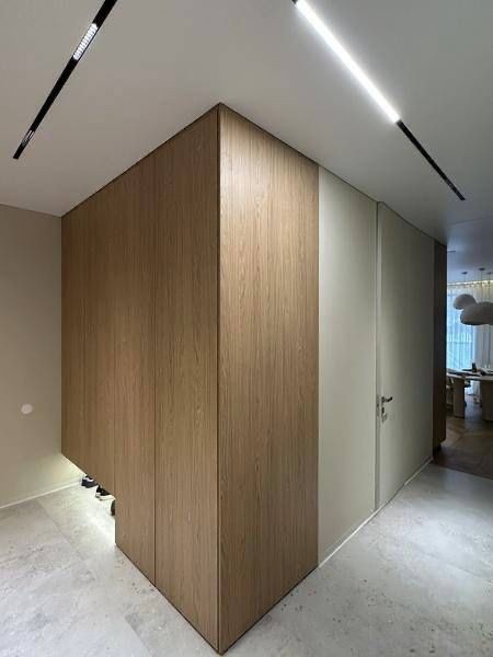 Передпокій — продуманий до дрібниць: багато місця для зберігання, сучасне підсвічування та відчуття простору вже з порогу.