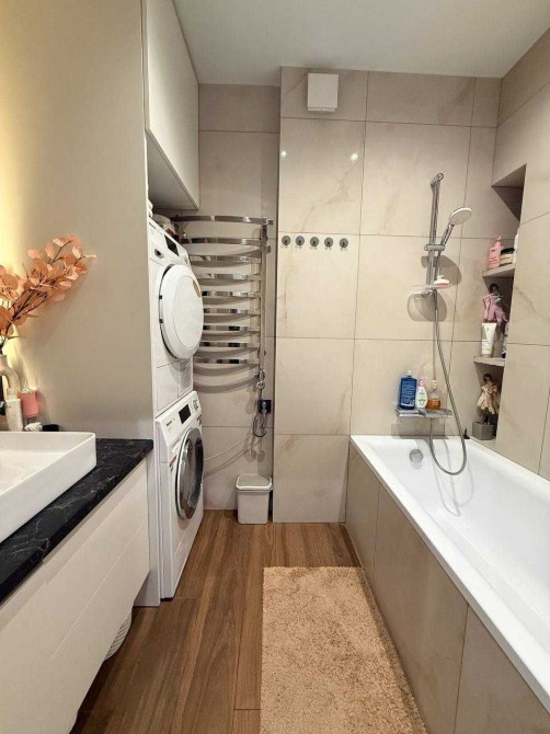 Залишаються всі вмонтовані меблі та техніка відомих брендів. Усюди тепла підлога, окрім спальні та дитячої. Індивідуальне газове опалення, котел газовий та електричний, інвентор 5 кВт.