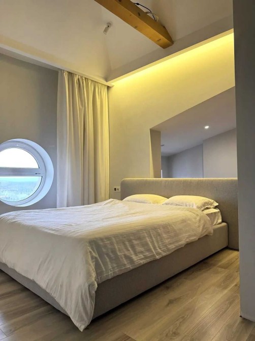 Продається дворівнева квартира з авторським проєктом ремонту. Планування продумане та розділене на дві функціональні зони. Перший рівень включає простору кухню-вітальню 39,2 м², обʼєднану з лоджією, гостьовий санвузол з душовою, гардеробну кімнату та комору. Другий рівень (приватна зона) містить спальню з робочою зоною, гостьову спальню, санвузол з великою ванною та велику гардеробну. В інтерʼєрі використано натуральні матеріали: підлога — паркетна дошка, стеля — гіпсокартон, деревʼяні балки, гіпсова ліпнина. Встановлена якісна сантехніка.