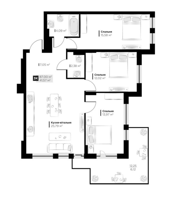 Площа 87 м2