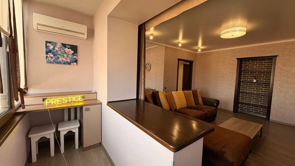 Сучасний ремонт, універсальний дизайн. Вхідні та міжкімнатні двери із натуральної деревини - дуб. Підлога (коридор та зона балкону) з підігрівом. Квартира дуже тепла та суха. Всі стелі, стіни, меблі та техніка в ідеальному стані.