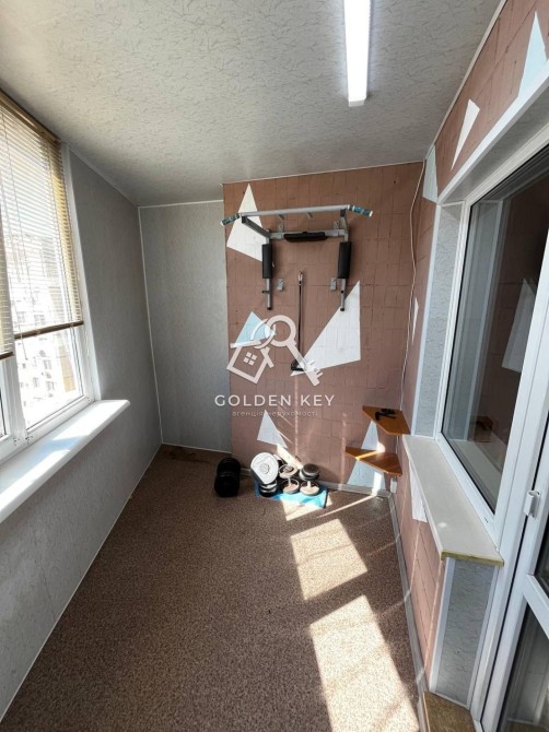 Підлога: у коридорі, кухні та санвузлі — плитка, у кімнатах — лінолеум. Друга лоджія простора, майже як окрема кімната, використовувалась як спортзал.