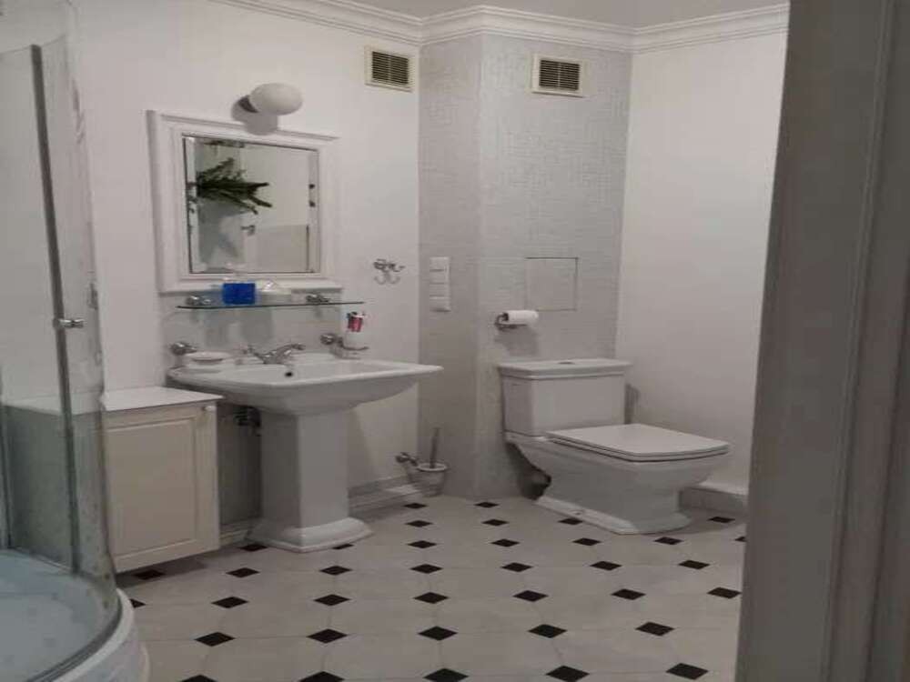 Дві гардеробні (2,5 та 3 кв.м), одна з яких слугує пральнею. Великий санвузол (6,3 кв.м) з ванною.