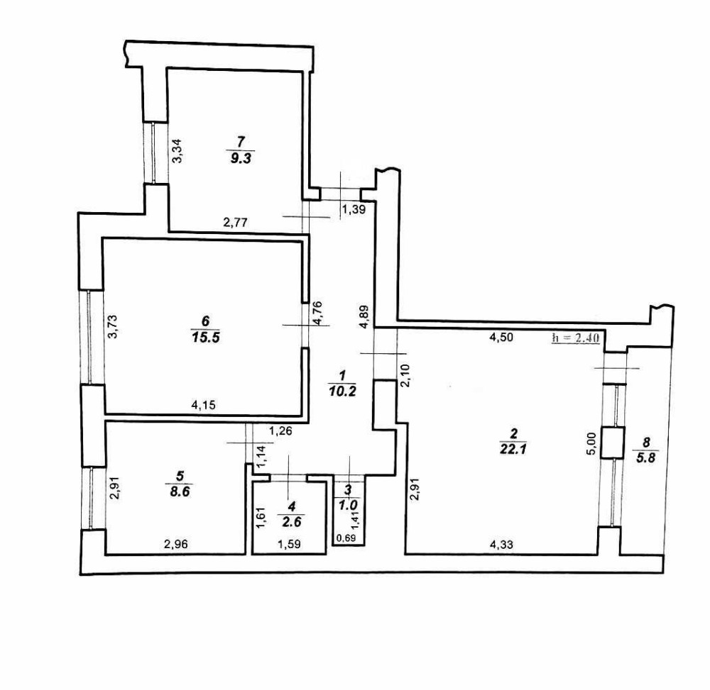 Кімнати 15.5 кв м, 22.1 кв м, 8.6 кв м