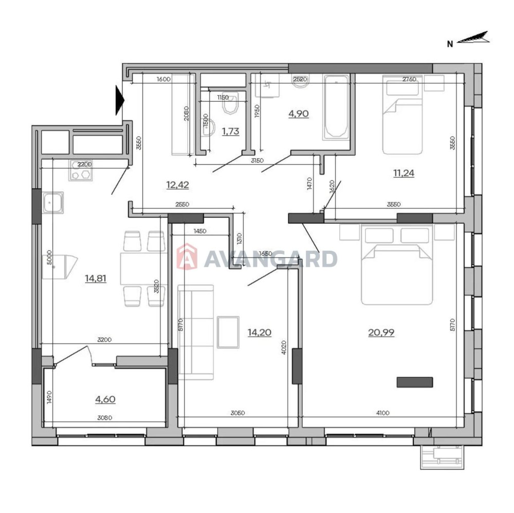• Трехкомнатная