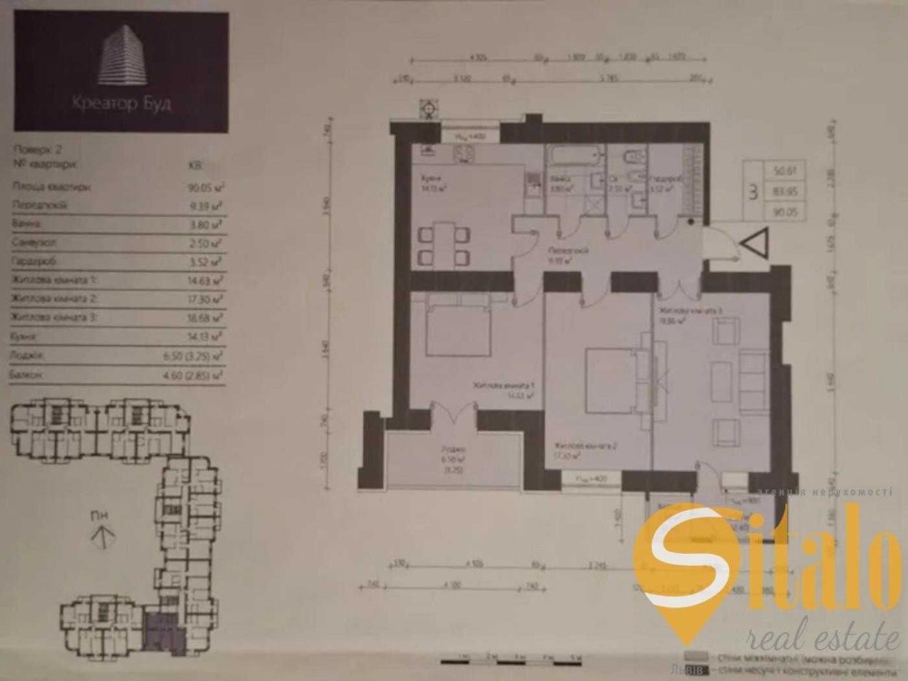 Загальна площа - 91 м, кухня - 14 м.