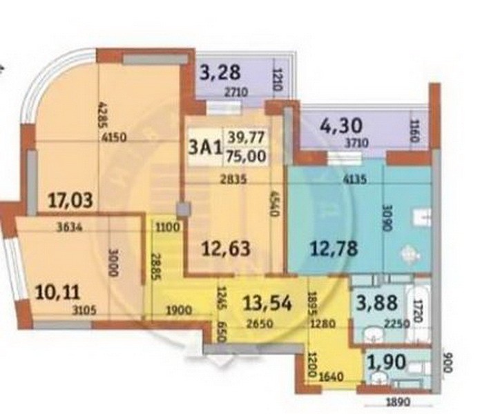 • Площадь кухни 12.78 м2