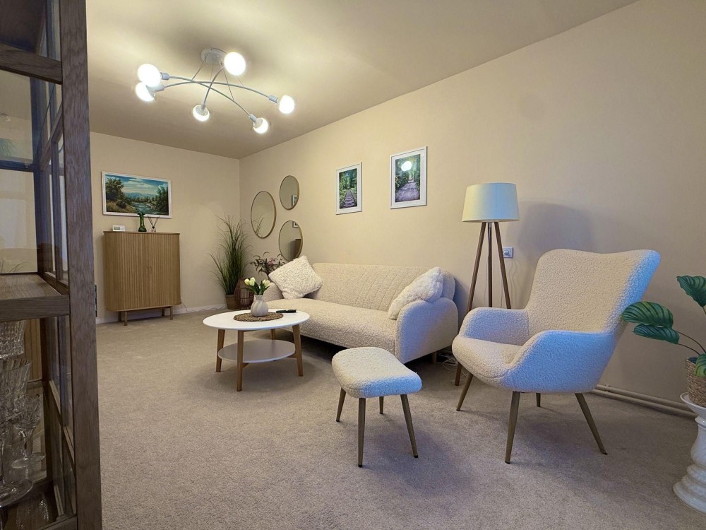 Продається трикімнатна квартира + гараж на цокольному поверсі під квартирою , також присутня невелика територія для ведення садівництва.
