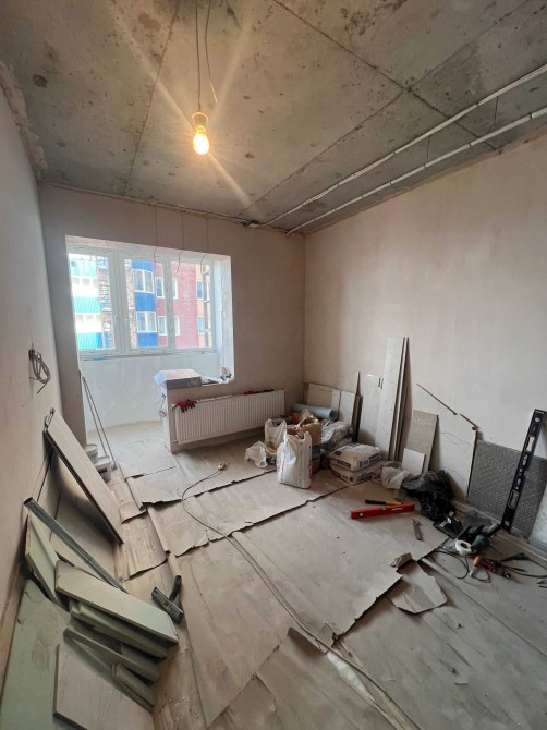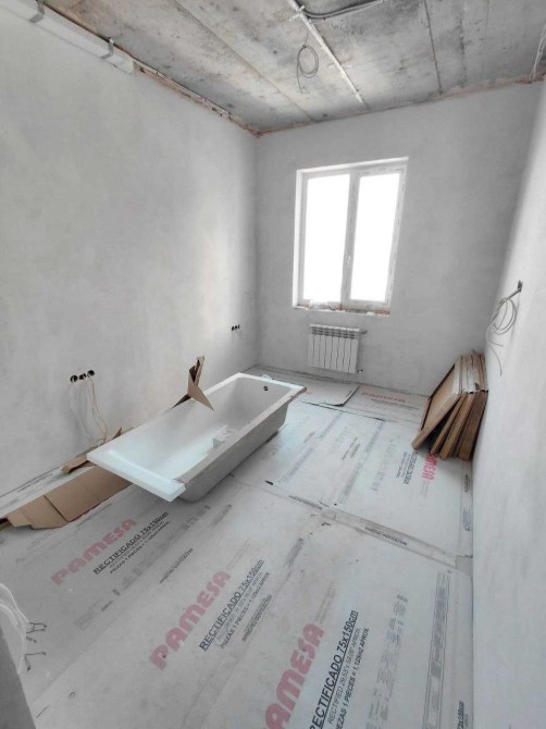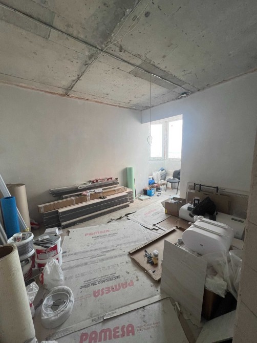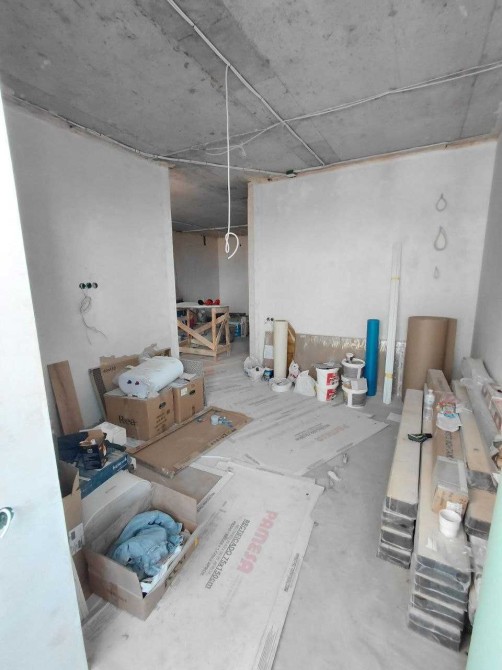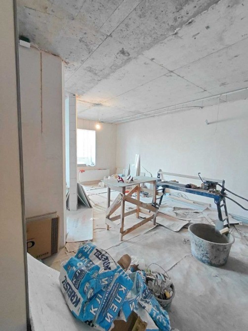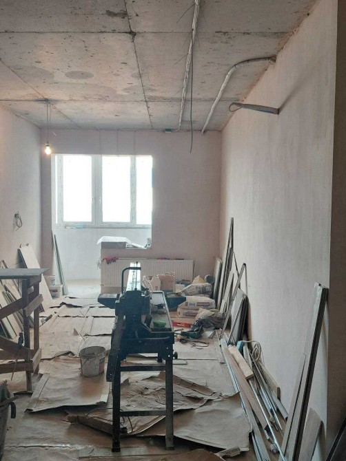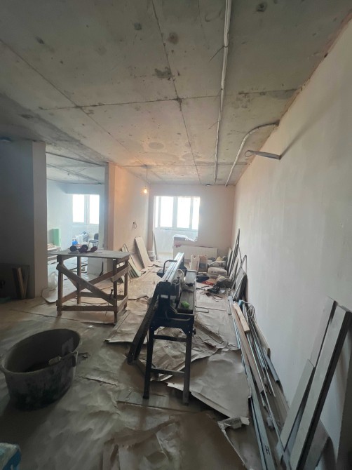 Виконані всі чорнові роботи: зведені внутрішні перегородки з газобетону, стіни оштукатурені та підготовлені під оздоблення.