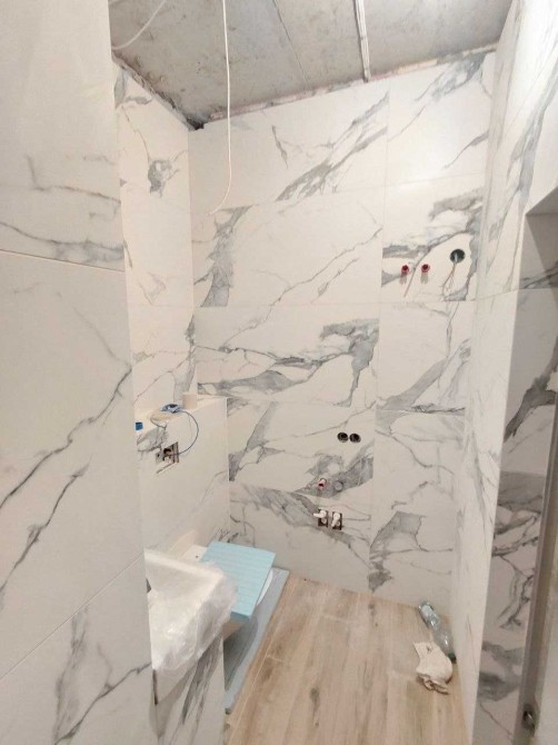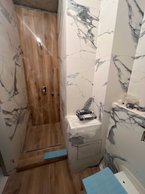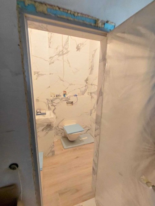 Проведено електропроводку, встановлено лічильники на воду та опалення, частково закуплена сантехніка, один санвузол вже з оздобленням і душовою кабіною.
