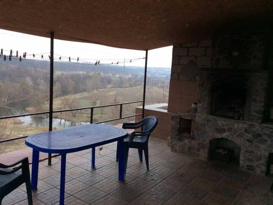 -Простора кухня з їдальнею та виходом на терасу з барбекю і видом на річку