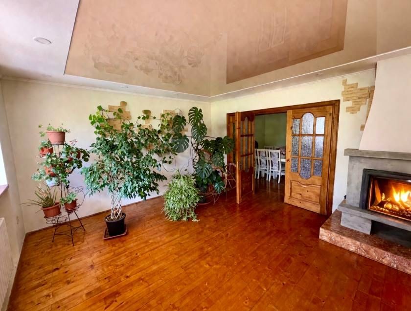 Окрема перевага — діючий камін, який ефективно обігріває два поверхи, створюючи затишну атмосферу та зменшуючи витрати на опалення.