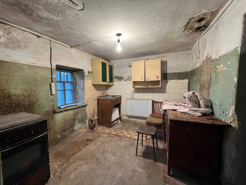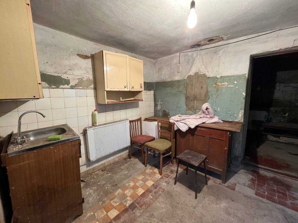 Будинок цегляний 41 кв., фундамент камінь, дах шифер, перекриття дерев'яне. Заведено водопостачання та газ, є газовий котел- не працює. Окремо літня кухня 21 кв. З комунікацій поміняні: труби водопостачання та опалення, радіатори; все інше рідне. Туалет є і в літній кухні і в будинку, ванна лише в кухні.
