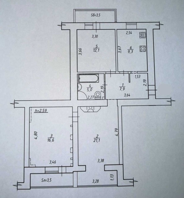 Площа: 79 м²/ 50 м²/ 9,3 м²